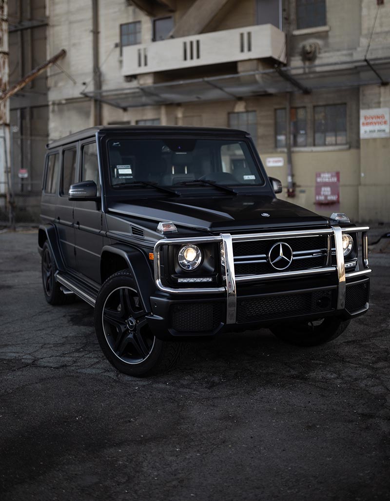 Design und Exterieur: Das kantige, ikonische Design der G-Klasse wird durch AMG-spezifische Elemente wie den markanten Kühlergrill, exklusive Radoptionen und eine aggressive Frontschürze ergänzt, die die sportliche Natur des Fahrzeugs unterstreichen.