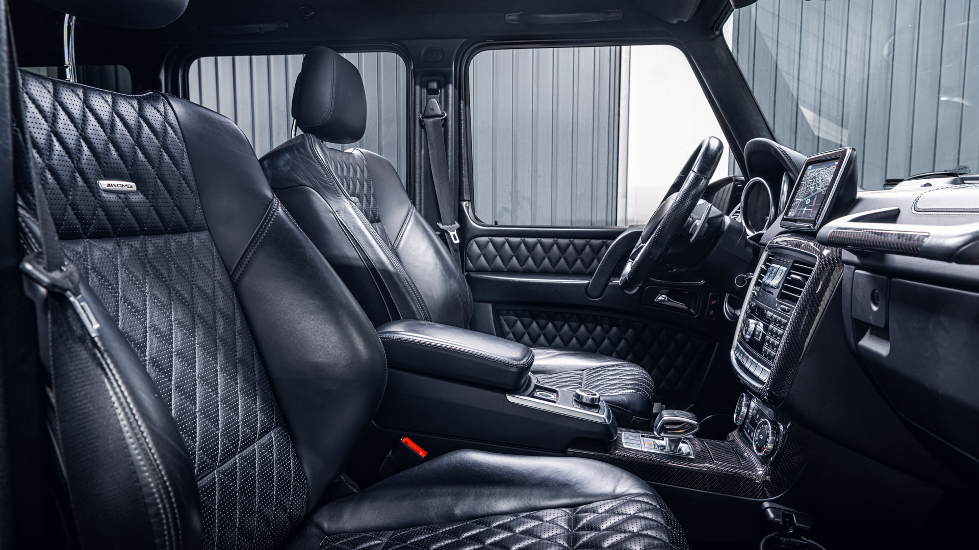 Der Innenraum des G 63 AMG strahlt Luxus und Raffinesse aus. Er ist mit den feinsten Materialien ausgestattet und bietet modernste Technologien. Von hochwertigen Lederpolstern bis hin zu fortschrittlichen Infotainment-Systemen und AMG-spezifischen Instrumenten – jede Komponente ist darauf ausgelegt, Komfort und Stil zu maximieren.